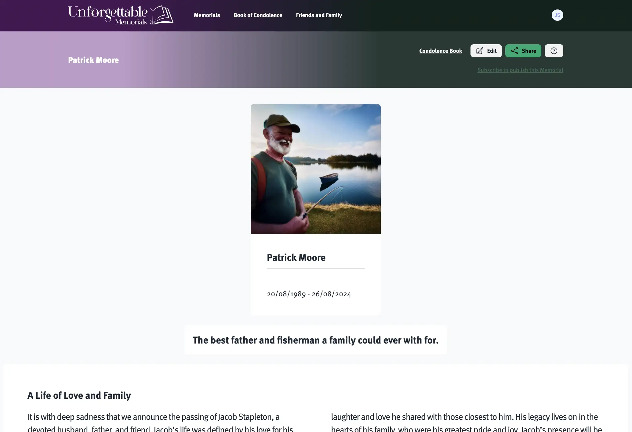 It's available for everyone to continually share messages, support and stories to celebrate a persons life.